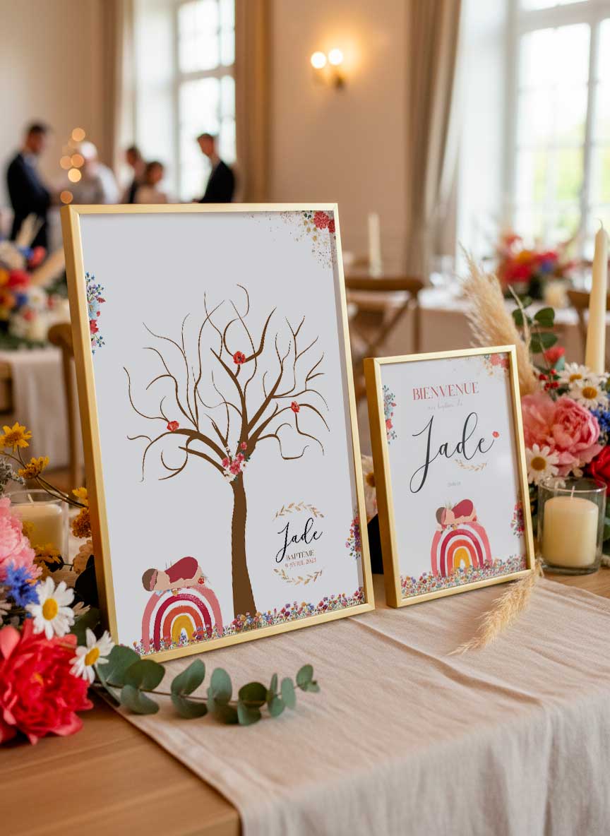 Pack Duo Baptême : Arbre à empreintes + Affiche Bienvenue Arc-en-Ciel ( jusqu'à -70% )