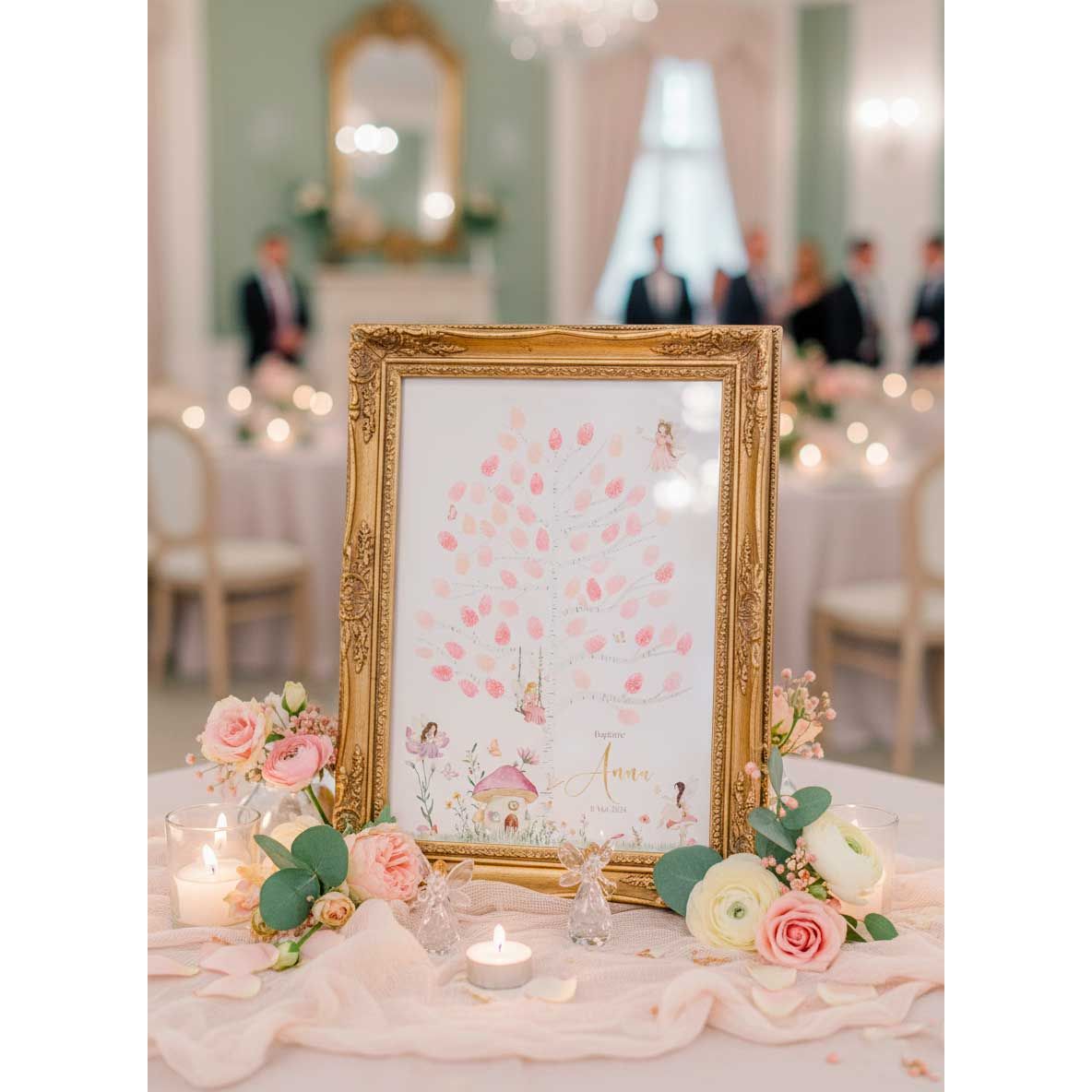 Arbre à empreintes personnalisé avec le prénom de votre enfant pour son Baptême, baby shower ou anniversaire.
