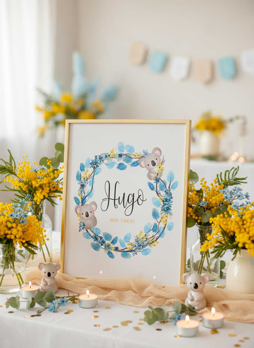 Craquez pour ses koalas tendres et sa couronne fleurie de mimosa pour une touche ensoleillée !