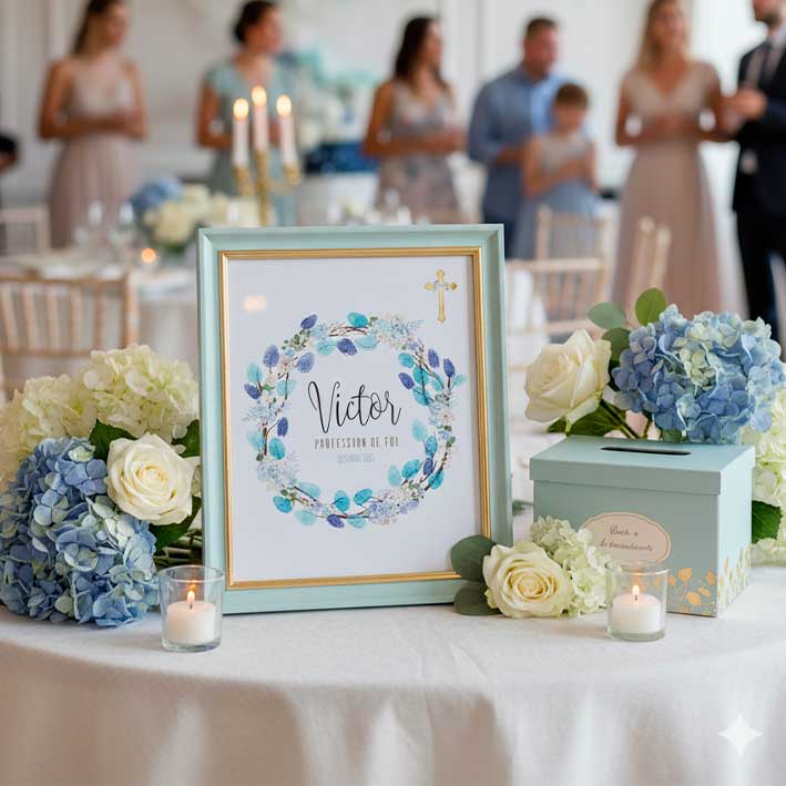 Arbre à empreintes personnalisé avec le prénom de votre enfant pour son Baptême ou communion dans un univers printanier champêtre.