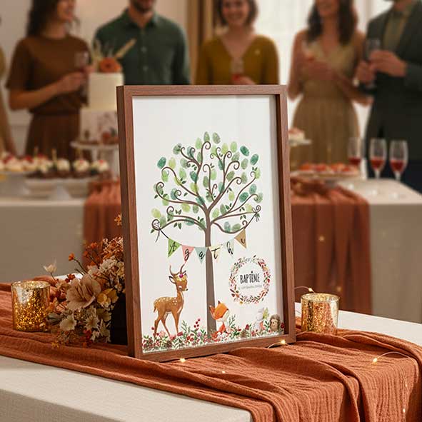 Arbre à empreintes anniversaire, baby shower ou baptême personnalisé avec le prénom de votre enfant.