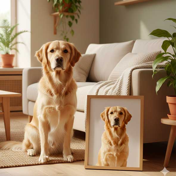 Offrez (ou offrez-vous) un portrait poétique de votre compagnon, illustré en style aquarelle moderne à partir de vos photos.