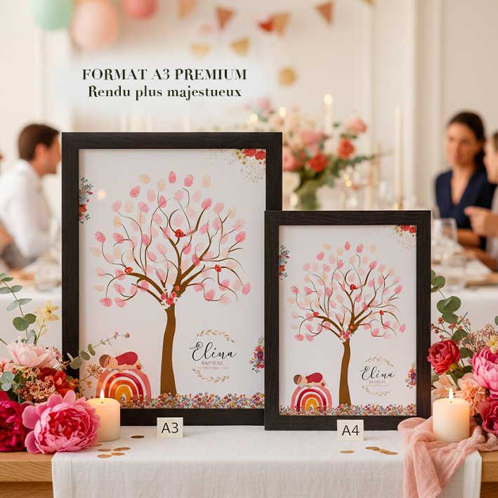 Arbre à empreintes personnalisé baptême ou anniversaire avec le prénom de votre enfant.