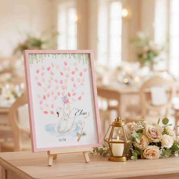 Craquez pour son cygne majestueux et son univers bucolique avec les adorables lapins et ses teintes pastel remplies de tendresse pour votre cérémonie, décoration de fête.